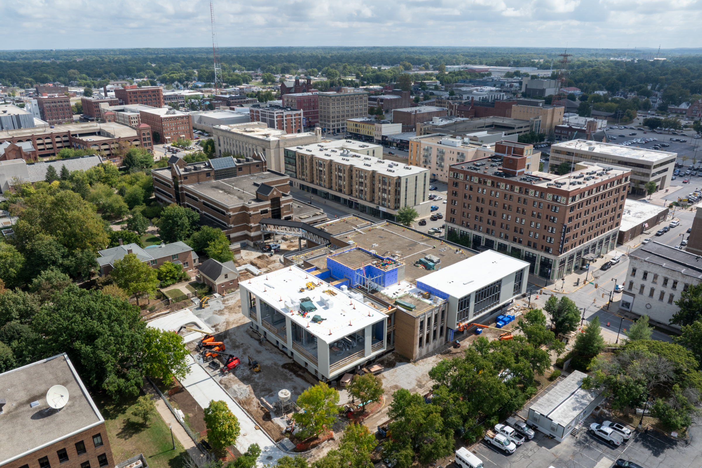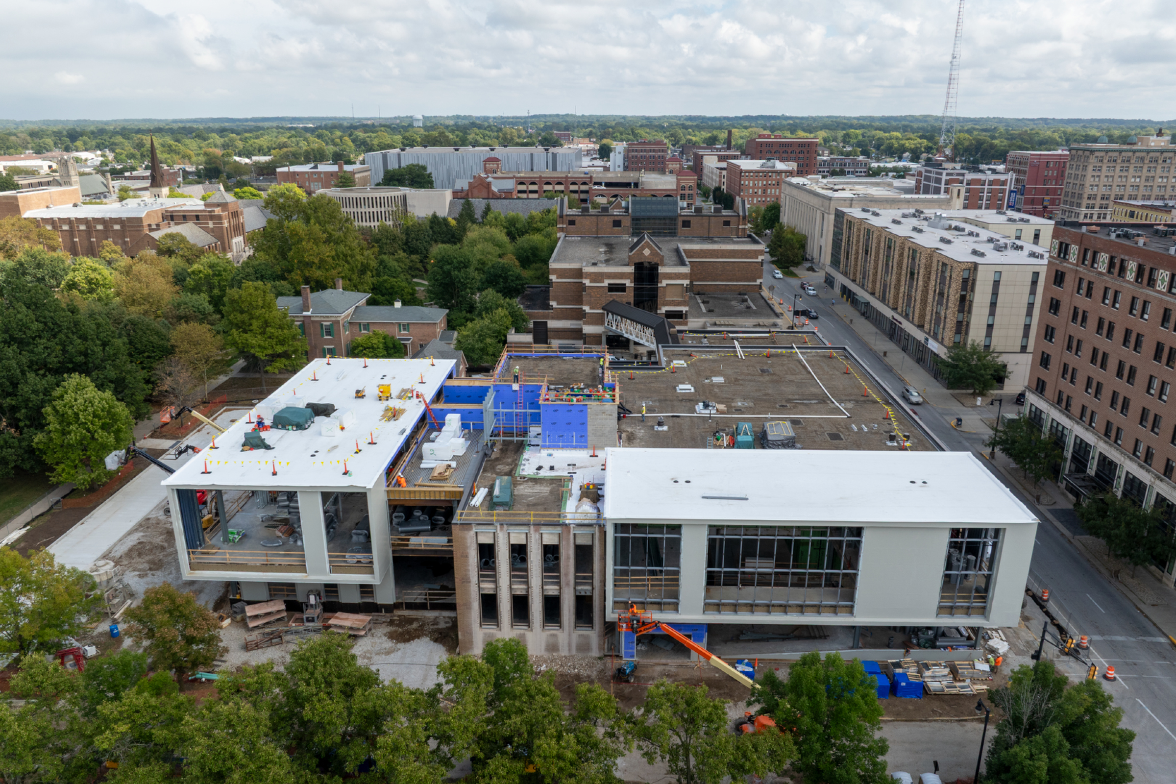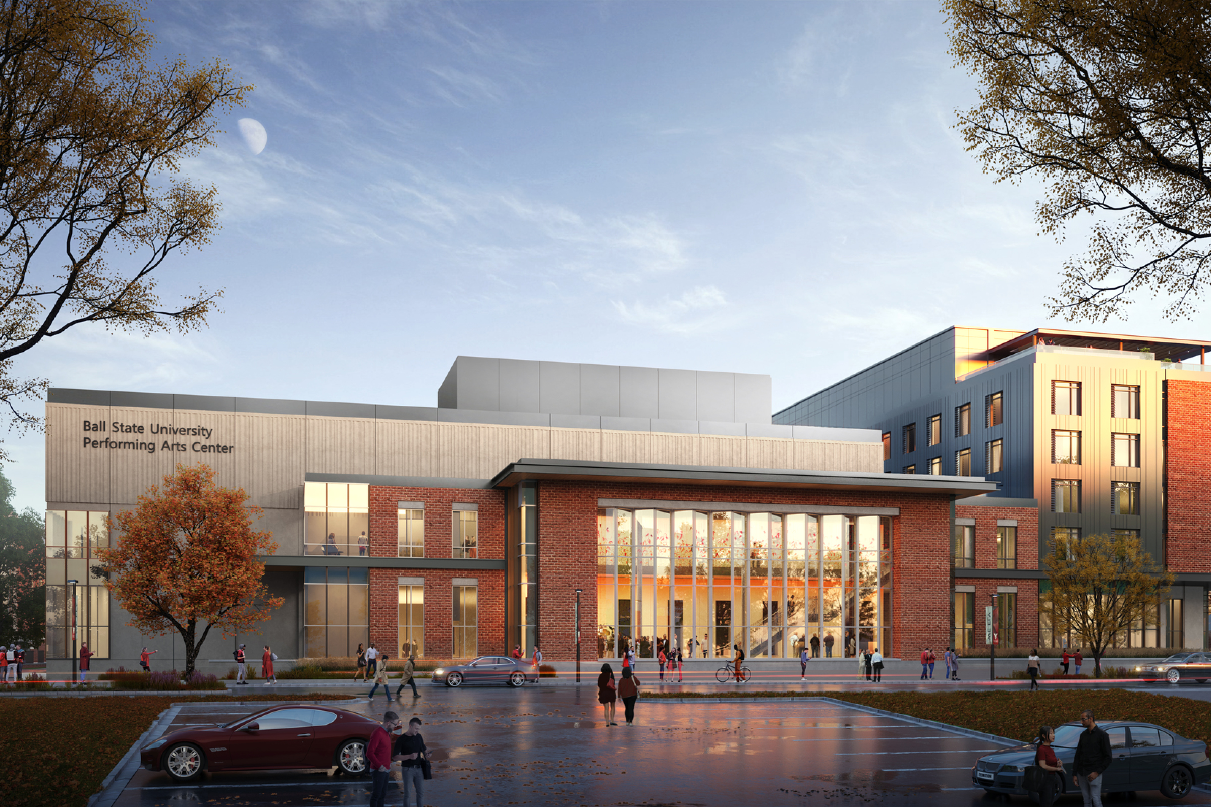 Integrated with an adjacent hotel, the center will feature a restaurant and rooftop bar, promoting a vibrant arts community. This facility enhances performance and learning at Ball State and serves as a vital recruitment tool.
