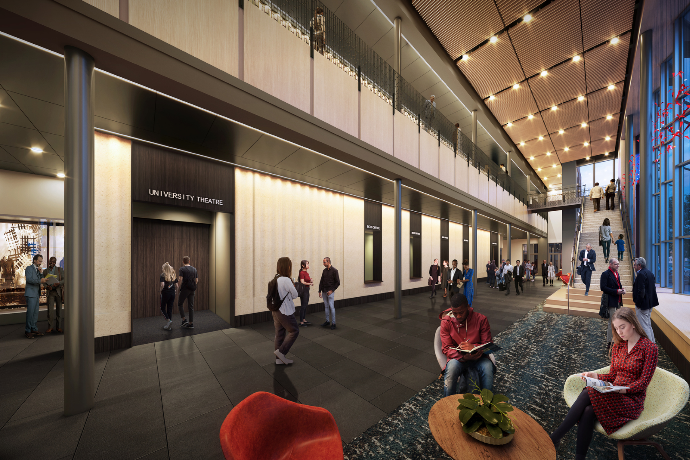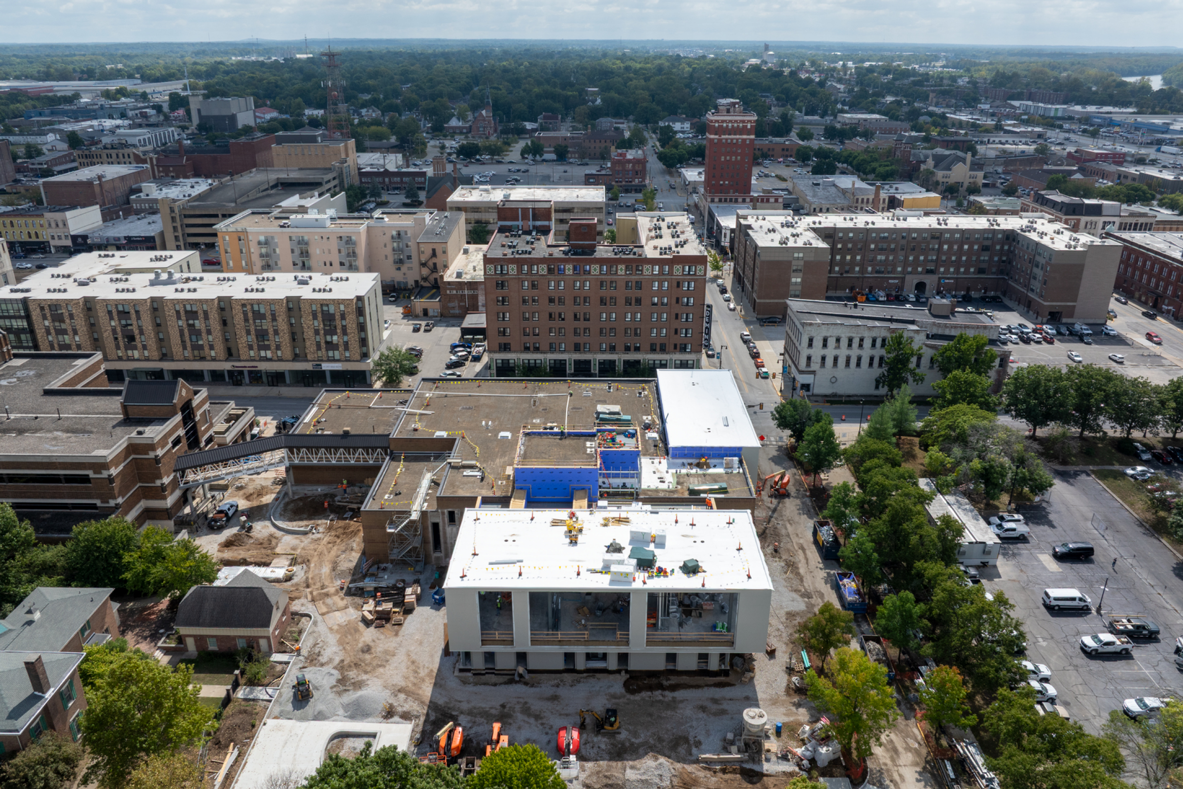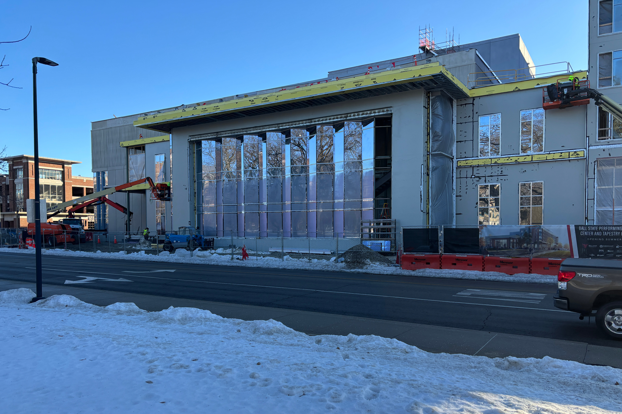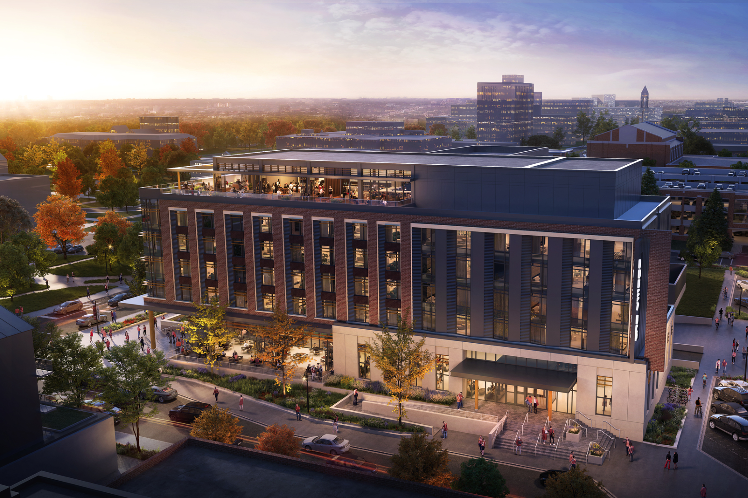Integrated with an adjacent hotel, the center will feature a restaurant and rooftop bar, promoting a vibrant arts community. This facility enhances performance and learning at Ball State and serves as a vital recruitment tool.