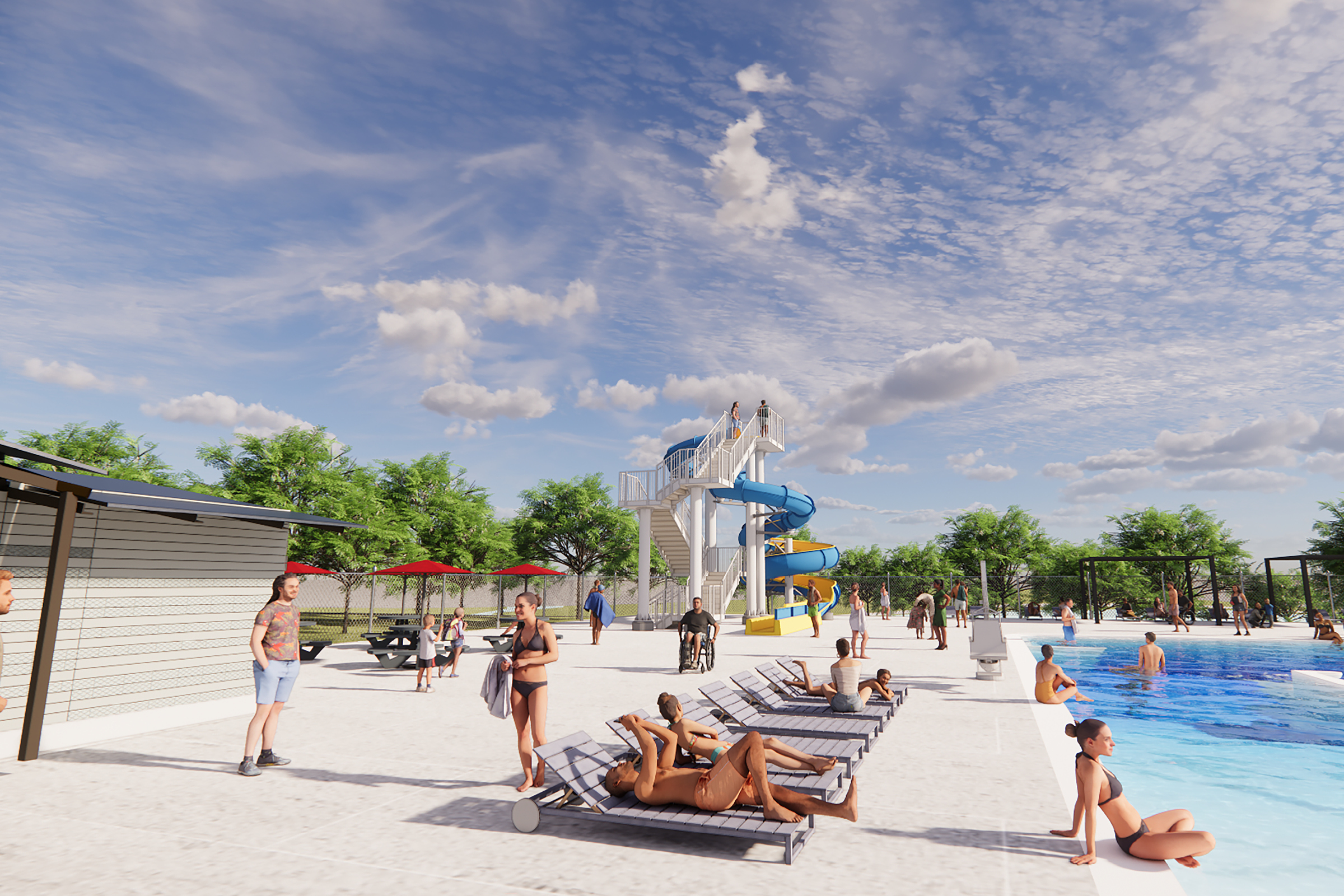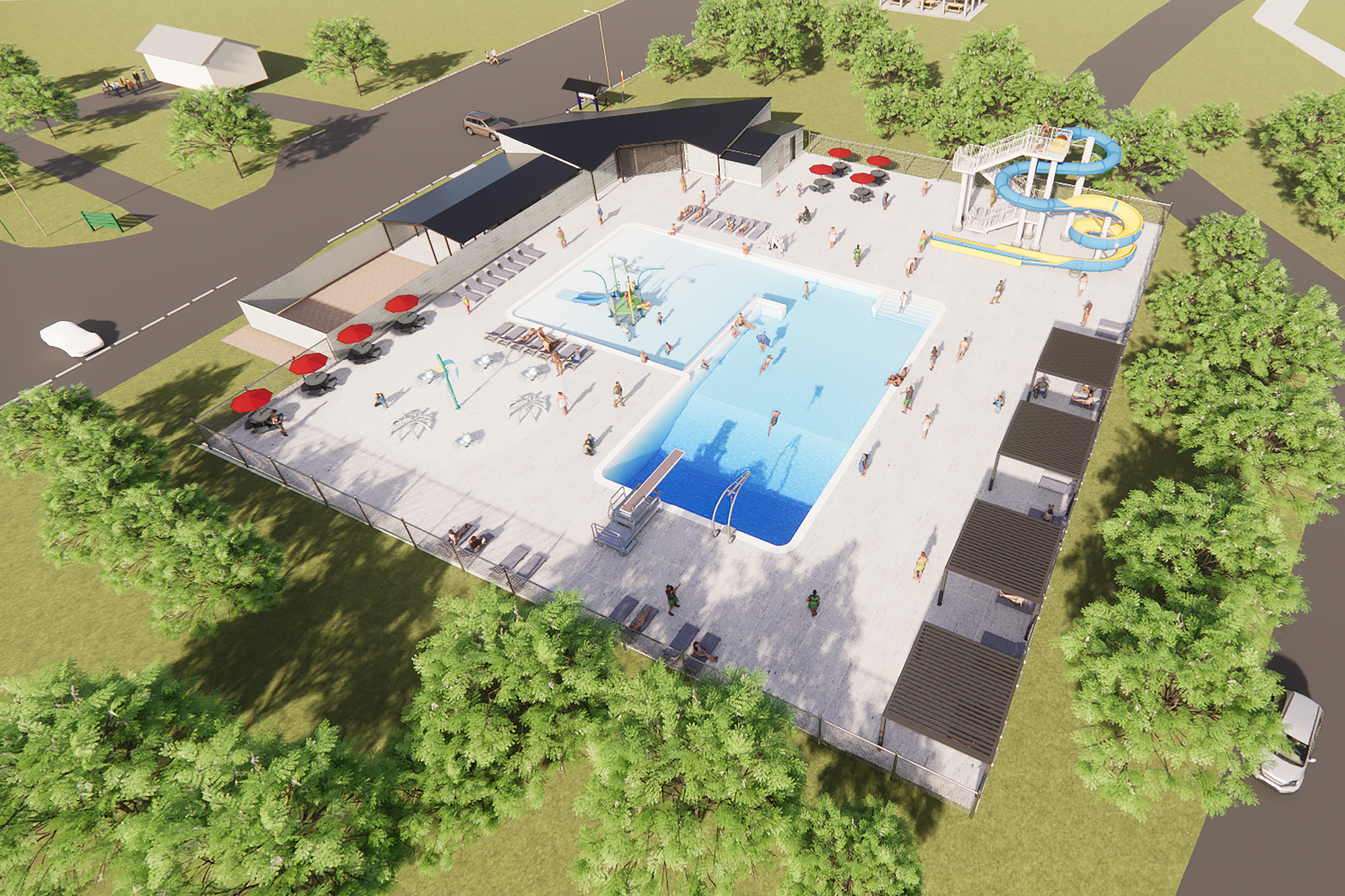The transformation of Terre Haute’s Deming Park Pool revitalizes the existing facility into a state-of-the-art aquatic center. Renovations include a redesigned pool shell with zero-depth beach entry, a fully renovated bathhouse, new accessible gender-neutral family bathrooms, and updated water treatment systems. Located in Terre Haute’s oldest park, built from George Kessler’s 1913 Park and Boulevard Plan, the project combines thoughtful, strategic design with community-focused improvements that enhance recreation for all ages.