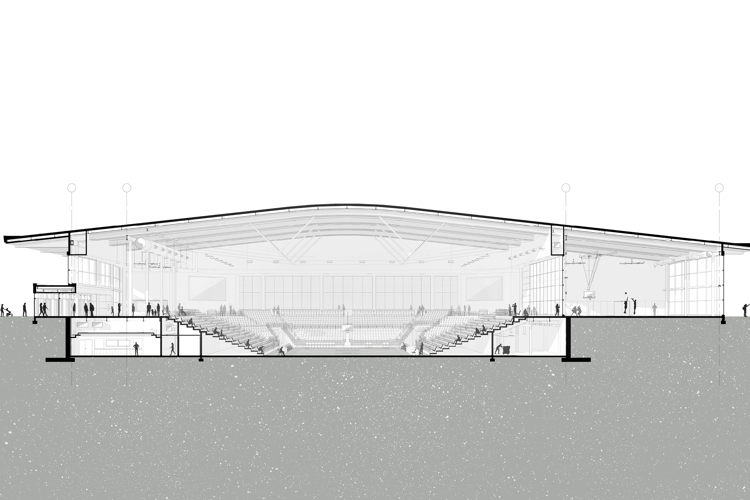 A transformational arena anchoring the growing campus of IU Indianapolis while providing an intimate multi-purpose venue for the broader community. The arena is seamlessly integrated into its site by directly addressing neighboring context, with a pure and simple architectural language.